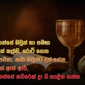 25 මුහුදෙන් එගොඩ දී උන් වහන්සේ හමු වී, ”ගුරුදේවයෙනි, ඔබ මෙහි වැඩියේ කොයි වේලේ දැ”යි ඔව්හු ඇසූ හ. 26 ජේසුස් වහන්සේ පිළිතුරු දෙමින්, ”ඒකාන්තයෙන් මම ඔබට කියමි, ඔබ මා සොයන්නේ හාස්කම් දුටු නිසා නොව, රොටි කා තෘප්තියට පැමිණි නිසා ය. 27 නැති වී යන ආහාරය සඳහා නොව, සදාතන ජීවනයට ඉවහල් වන ආහාරය සඳහා වීර්ය වඩන්න. මේ ආහාරය ඔබට ප්රදානය කරන්නේ මනුෂ්ය-පුත්රයාණෝ ය. පියාණන් වන දෙවියන් වහන්සේ මුද්රාව තබා ඇත්තේ උන් වහන්සේ මත ය”යි වදාළ සේක. 28 එබැවින් ඔව්හු, ”දෙවියන් වහන්සේගේ අභිප්රාය අනුව වැඩ කරන පිණිස අප කුමක් කටයුතු දැ”යි ඇසූ හ. 29 ජේසුස් වහන්සේ පිළිතුරු දෙමින්, ”දෙවියන් වහන්සේගේ අභිප්රාය වනුයේ, උන් වහන්සේ එවා වදාළ තැනැත්තාණන් ඔබ විසින් අදහාගැනීම ය”යි වදාළ සේක.
