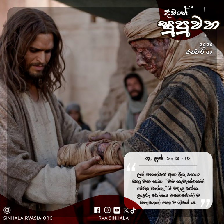 12 තවද උන් වහන්සේ එක් නුවරක සිටිය දී, සර්වාංගයෙහි ලාදුරු තිබුණු මිනිසෙක් එහි විය. ඔහු ජේසුස් වහන්සේ අබිමුවෙහි වැඳ වැටී, ”ස්වාමීනි, ඔබ කැමැති සේක් නම්, මා පවිත්ර කරන්න ඔබට හැකි ය” කියමින් උන් වහන්සේට කන්නලව් කෙළේ ය. 13 උන් වහන්සේ අත දිගු කොට ඔහු මත තබා, ”මම කැමැත්තෙමි, පවිත්ර වන්නැ”යි වදාළ සේක. ලාදුරු රෝගය එකෙණෙහි ම ඔහුගෙන් පහ ව ගියේ ය. 14 එය කිසිවෙකුට නොකියන ලෙස උන් වහන්සේ ඔහුට අණ දී, ”ඔබ ගොස් පූජකයාට පෙනී, ඔබේ පවිත්ර වීම සඳහා ඔවුන්ට සාක්ෂියක් වන පිණිස මෝසෙස් අණ කළ දේවල් ඔප්පු කරන්නැ”යි වදාළ සේක. 15 එහෙත්, උන් වහන්සේ ගැන ප්රවෘත්තිය වඩ වඩා පතළ විය; බොහෝ සමූහයෝ උන් වහන්සේට සවන් දෙන පිණිස ද සියලු රෝග සුව කරවාගන්න පිණිස ද රැස් වූ හ. 16 එහෙත්, උන් වහන්සේ හුදකලා පෙදෙසකට ගොස් යාච්ඤා කළ සේක.