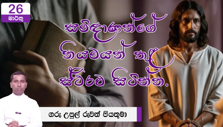 දහම් සර දේව රාජ්යය උරුම කරගැනීමට නීතියට අනුව ජීවත්වෙන්න. දේව රාජ්යය උරුම කරගැනීමට නීතියට අනුව ජීවත්වෙන්න.