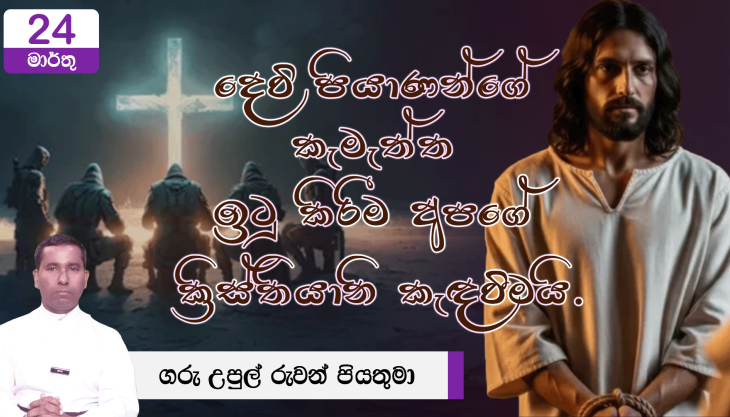 දහම් සර දෙවි පියාණන්ගේ කැමැත්ත ඉටු කිරීම අපගේ ක්රිස්තියානි කැඳවීමයි. දෙවි පියාණන්ගේ කැමැත්ත ඉටු කිරීම අපගේ ක්රිස්තියානි කැඳවීමයි.