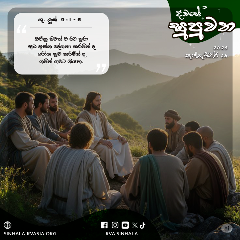 1 එකල උන් වහන්සේ ශ්රාවකයන් දොළොස් දෙනා කැඳවා, සියලු දුෂ්ටාත්මයන් කෙරෙහි බලය හා ආධිපත්යය ද රෝග සුව කිරීමේ වරය ද පවරා දී 2 දෙවියන් වහන්සේගේ රාජ්යය ප්රකාශ කරන පිණිසත්, රෝගීන් සුව කරන පිණිසත් ඔවුන් යැවූ සේක. 3 තවද උන් වහන්සේ ඔවුන්ට කතා කොට, ”චාරිකාව සඳහා කිසිවක් නොගන්න; සැරයටියක් වත්, මල්ලක් වත්, රොටි වත්, මිලමුදල් වත්, කමිස දෙකක් වත් නොගන්න. 4 ඔබ යම් කිසි නිවෙසකට පිවිසි කල, එතැනින් පිටත් ව යන තුරු එහි ම නැවතී සිටින්න. 5 ඔබ නොපිළිගන්නා යම් පමණ දෙනෙක් ඇද්ද, ඒ නුවරින් නික්ම යන කල ඔවුන්ට විරුද්ධ ව සාක්ෂියක් වන පිණිස, ඔබේ පාද යට තිබෙන ධූලි ගසා දමන්නැ”යි වදාළ සේක. 6 ඔව්හු පිටත් ව රට පුරා සුබ අස්න දේශනා කරමින් ද රෝග සුව කරමින් ද ගමින් ගමට ගියහ.
