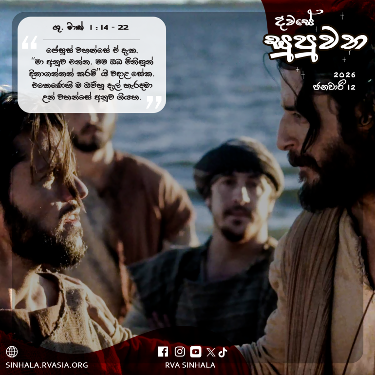 16 උන් වහන්සේ ගලීලයේ මුහුද අද්දර ඇවිදින විට සීමොන් ද ඔහුගේ සොහොයුරු ඇන්ඩෘ ද මුහුදෙහි දැලක් දමනු දුටු සේක. ඔව්හු මසුන් අල්ලන්නෝ වූ හ. 17 ජේසුස් වහන්සේ ඒ දැක, ”මා අනුව එන්න; මම ඔබ මිනිසුන් දිනාගන්නන් කරමි”යි වදාළ සේක. 18 එකෙණෙහි ම ඔව්හු දැල් හැරදමා උන් වහන්සේ අනුව ගියහ.