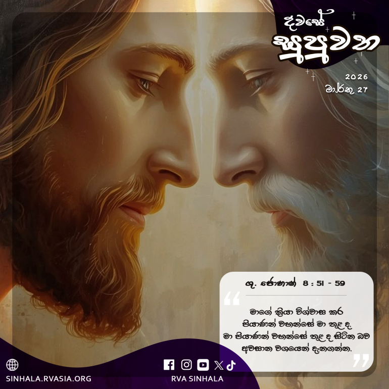 34 ජේසුස් වහන්සේ ඔවුන්ට පිළිතුරු දෙමින්, ” ‘ඔබ දෙවිවරු ය’යි කීමි යි ඔබේ ව්යවස්ථාවලියේ ලියා තිබෙනවා නොවේ ද? 35 එය ප්රතික්ෂේප කළ නොහැකි ය. ඒ ශුද්ධ ලියවිල්ලේ කියා ඇති පරිදි, දෙවියන් වහන්සේගේ වචනය දෙනු ලැබූවන්ට දෙවිවරු යයි උන් වහන්සේ වදාළ සේක. ඒ ශුද්ධ ලියවිල්ල ප්රතික්ෂේප කළ නොහැකි ය. 36 එසේ නම්, දෙවියන් වහන්සේ විසින් කැප කරනු ලැබ ලොවට එවන ලද තැනැත්තා වන මා ‘මම දෙවියන් වහන්සේගේ පුත්රයා’යි කී නිසා, ‘ඔබ දේවාපහාස කරන්නෙහි ය’යි මා ගැන කියන්නහු ද? 37 මම මාගේ පියාණන් වහන්සේගේ ක්රියා නොකරම් නම්, මා විශ්වාස නොකරන්න. 38 එහෙත් මම ඒවා කරම් නම්, ඔබ මා විශ්වාස නොකරතත්, මාගේ ක්රියා විශ්වාස කර පියාණන් වහන්සේ මා තුළ ද, මා පියාණන් වහන්සේ තුළ ද සිටින බව අවසාන වශයෙන් දැනගන්නැ”යි වදාළ සේක.