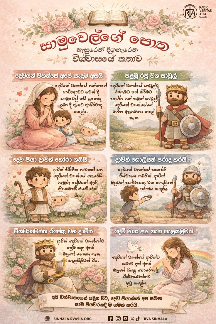 අපි දෙවිඳුන්ට යදිමින් උන්වහන්සේ මත විශ්වාසය තබන විට, දෙවිඳාණෝ අපට සිතාගත නොහැකි තරම් විශාල අයුරින් අප තුළින් ක්රියා කරයි. සාමුවෙල් පොත ඇදහිල්ල, ධෛර්යය සහ කරුණාව පිළිබඳ කතාන්දරයකි.