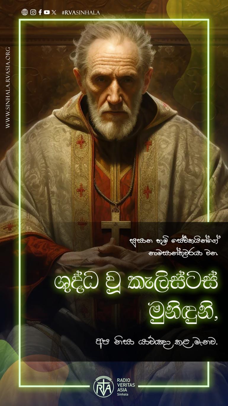 අද දින සුදුවර චරිතයෙන් ඔක්තොම්බර් 14වන දිනට මංගල්යය යෙදෙන ශුද්ධ වූ කැලිස්ටස් මුනිඳුන් ගැන කතා කරමු.