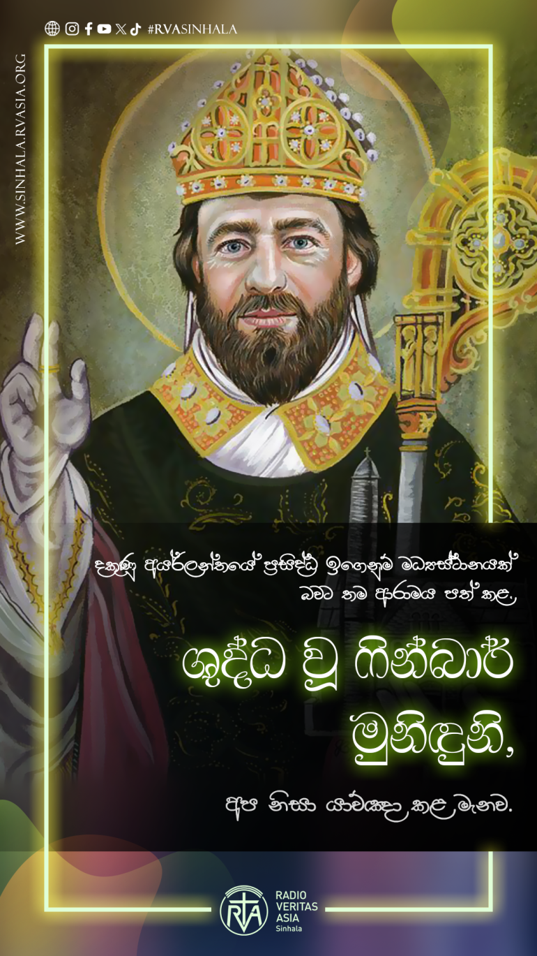 අද දින සුදුවර චරිතයෙන් සැප්තැම්බර් 25 වන දිනට මංගල්යය යෙදෙන ශුද්ධ වූ ෆින්බාර් මුනිඳුන් යදිමු.
